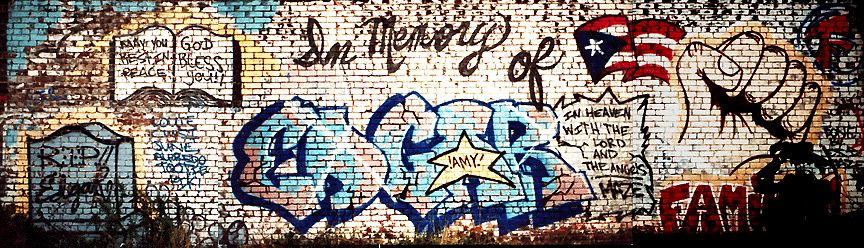 What Sword created, along with his crew ANC (Art Not Crime), were memorials for some of the teenagers from the neighborhood who died. Lucy, for example, was killed by a drunk driver. Because many of the people who live there knew Lucy and the others, they respect the art, and other crews do not spray over them.