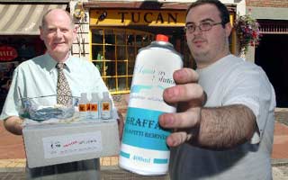 HELPING HAND FOR GRAFFITI-HIT TRADERS Written by Claire Hu and published on the This Is Brighton and Hove site at http://www.thisisbrighton.co.uk/ Traders are being encouraged to clean up graffiti with the help of 'buster boxes' being sent to 154 shops. Graffiti costs hundreds of thousands of pounds and ruins the image of Brighton, according to the City Centre Business Forum. The kits contain everything needed to get rid of graffiti with the minimum effort. The graffiti buster boxes were paid for by the forum, the council and property agents Stiles Harold Williams. They contain four different types of chemical to tackle all types of spray paint and surfaces, goggles, gloves, cleaning materials and detailed instructions. ![]() Tony Mernagh kits out Paul Fox from Tucan The kits were designed by Aquarius Solutions in Peacehaven, which has offered to show storekeepers how to use them. The project was launched after research by the forum showed nine per cent of businesses in the city centre simply put up with graffiti. City centre manager Tony Mernagh said: "The graffiti buster kits are to encourage people who think it is too difficult to remove graffiti and help them take responsibility. "The vast majority of people do actually clean graffiti from their own premises. There are about ten per cent who would clean up but don't know how to. Then there are ten per cent saying they are prepared to live with it." The council has a two-person graffiti cleaning team but Mr Mernagh said it was not big enough to cope with demand. |